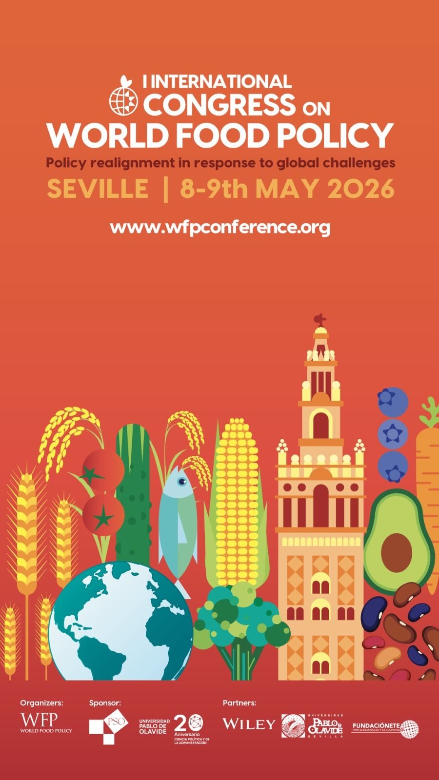 Los días 8 y 9 de mayo se celebrará en la Universidad Pablo de Olavide el I Congreso Internacional sobre Políltica Alimentaria Mundial organizado por la revista Política Alimentaria Mundial (PMA), la Organización de Estudios Políticos (PSO) y el Área de Ciencia Política y de la Administración de la UPO, coincidiendo con su 20º Aniversario.