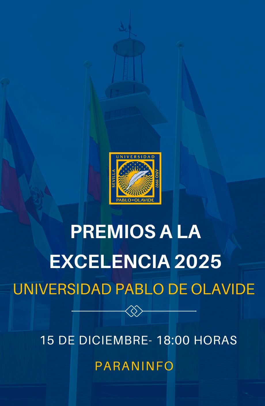 Acto de entrega de Premios a la Excelencia 2025 de la Universidad Pablo de Olavide, que tendrá lugar el próximo lunes 15 de diciembre, a las 18:00 h en el Paraninfo.