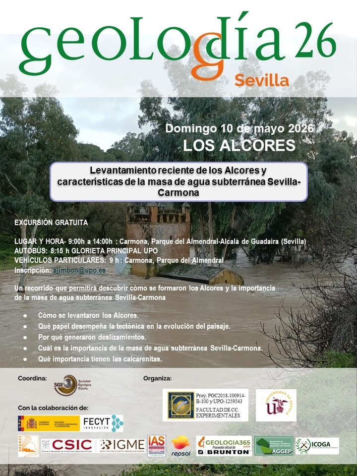 El domingo 10 de mayo se celebrará Geolodía Sevilla en los Alcores (Carmona y Alcalá de Guadaíra), un evento organizada por profesores de las Áreas de Geodinámica Externa y Geodinámica Interna de la Universidad Pablo de Olavide, y que se enmarca en Geolodía 2026, una actividad de divulgación científica en la que se realizan excursiones geológicas de campo guiadas por geólogos y geólogas, gratuitas y abiertas a todos los públicos.